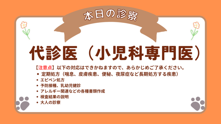 水曜日は代診医(小児科専門医)による診察となります。
